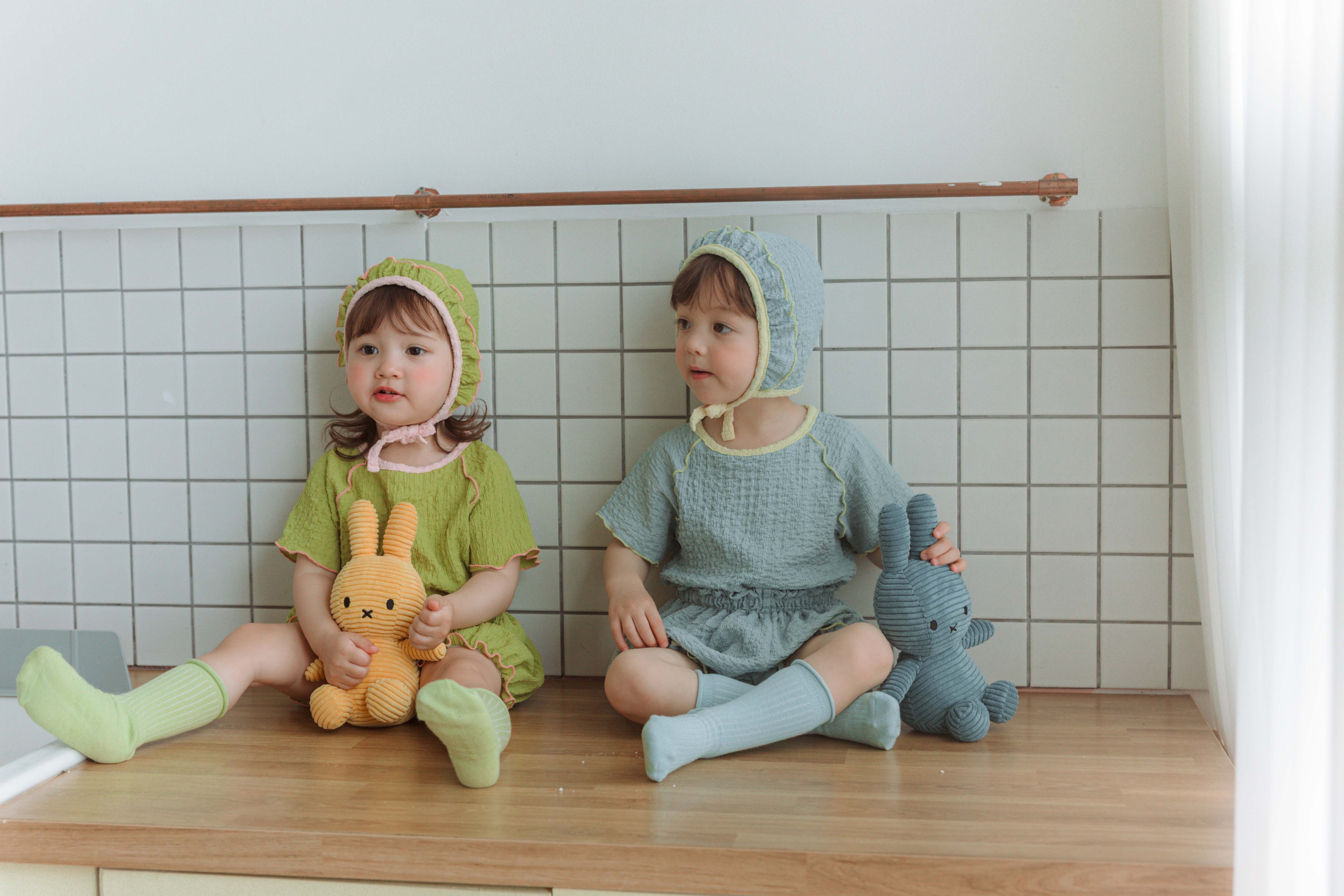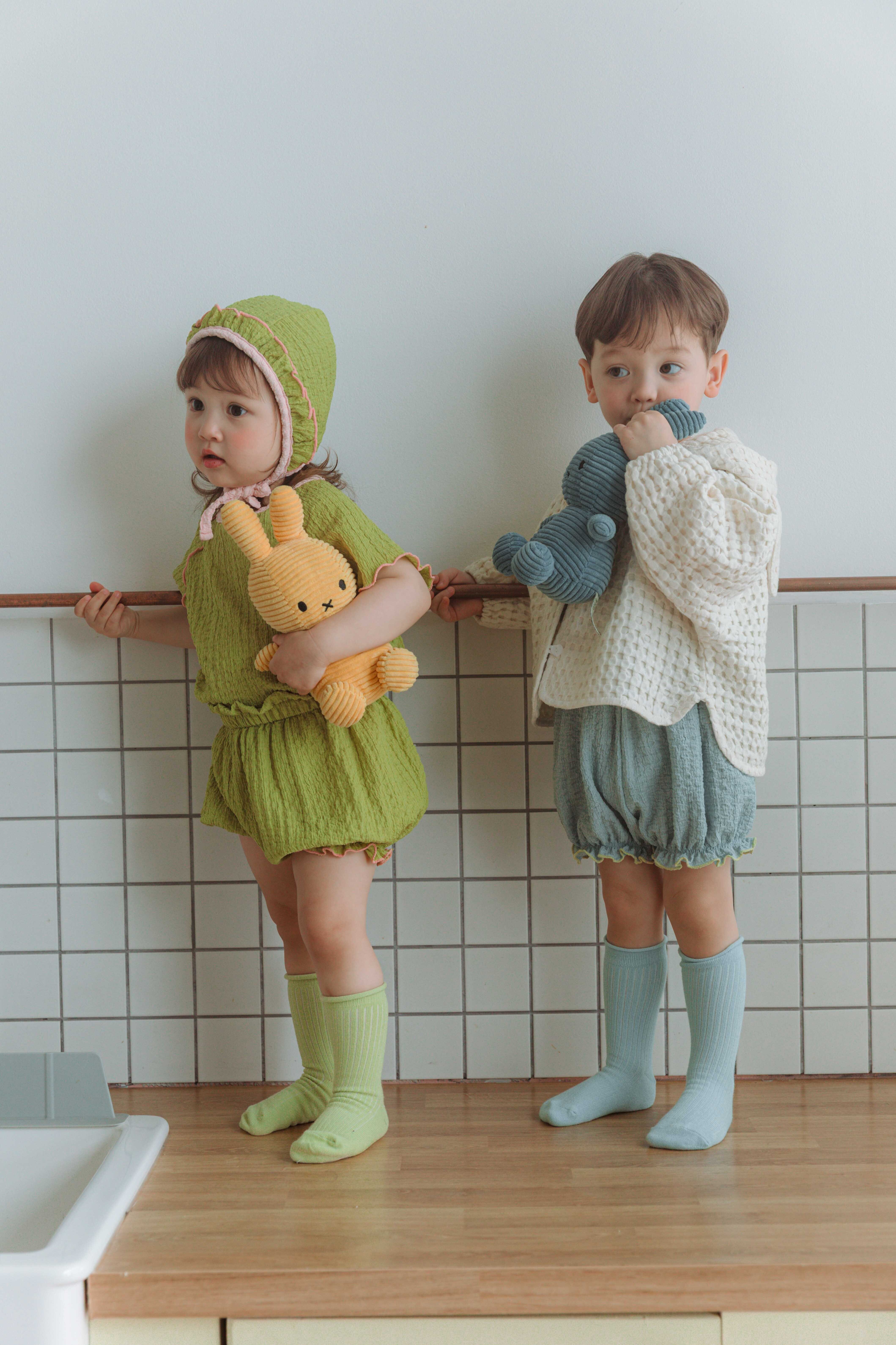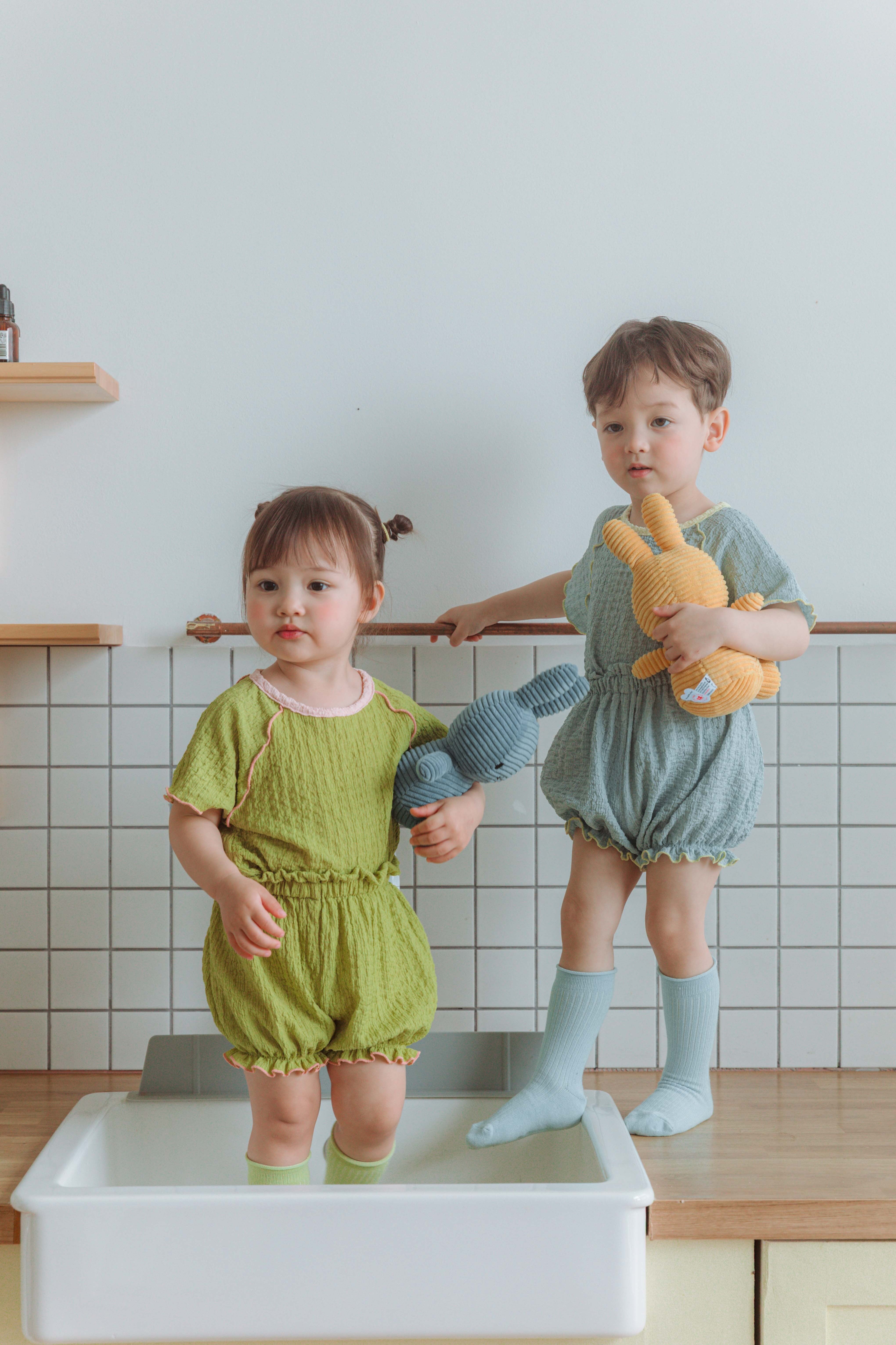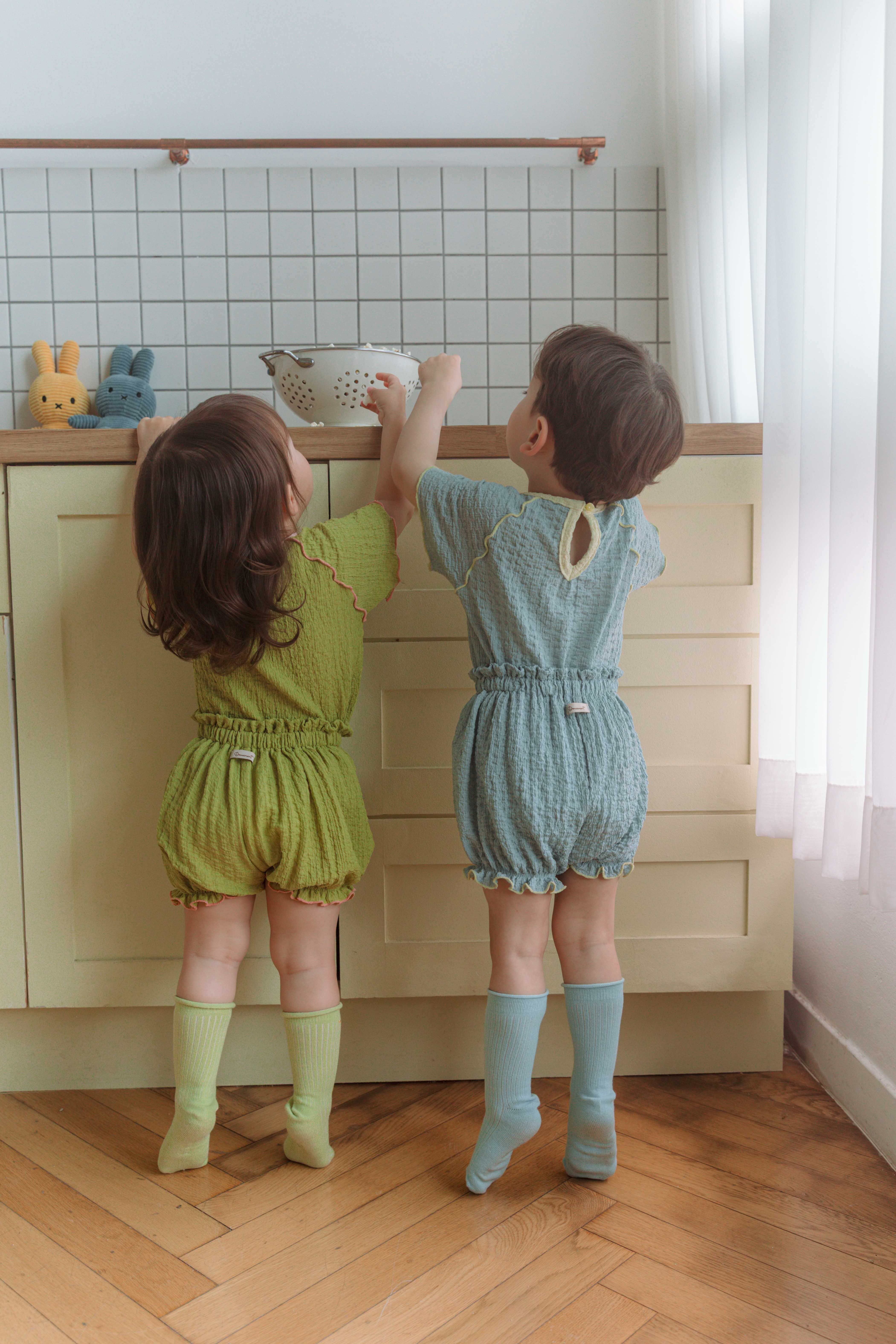 控えめなのにパッと目を惹く裾の配色フリルは、男の子にも女の子にも似合うユニセックスなデザイン♡
