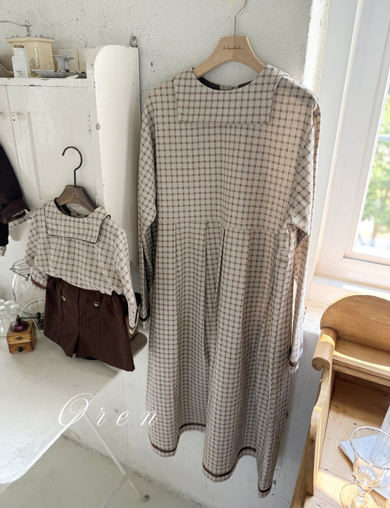 ママ用ワンピースはゆったりシルエットとチェック柄で体型カバーも◎