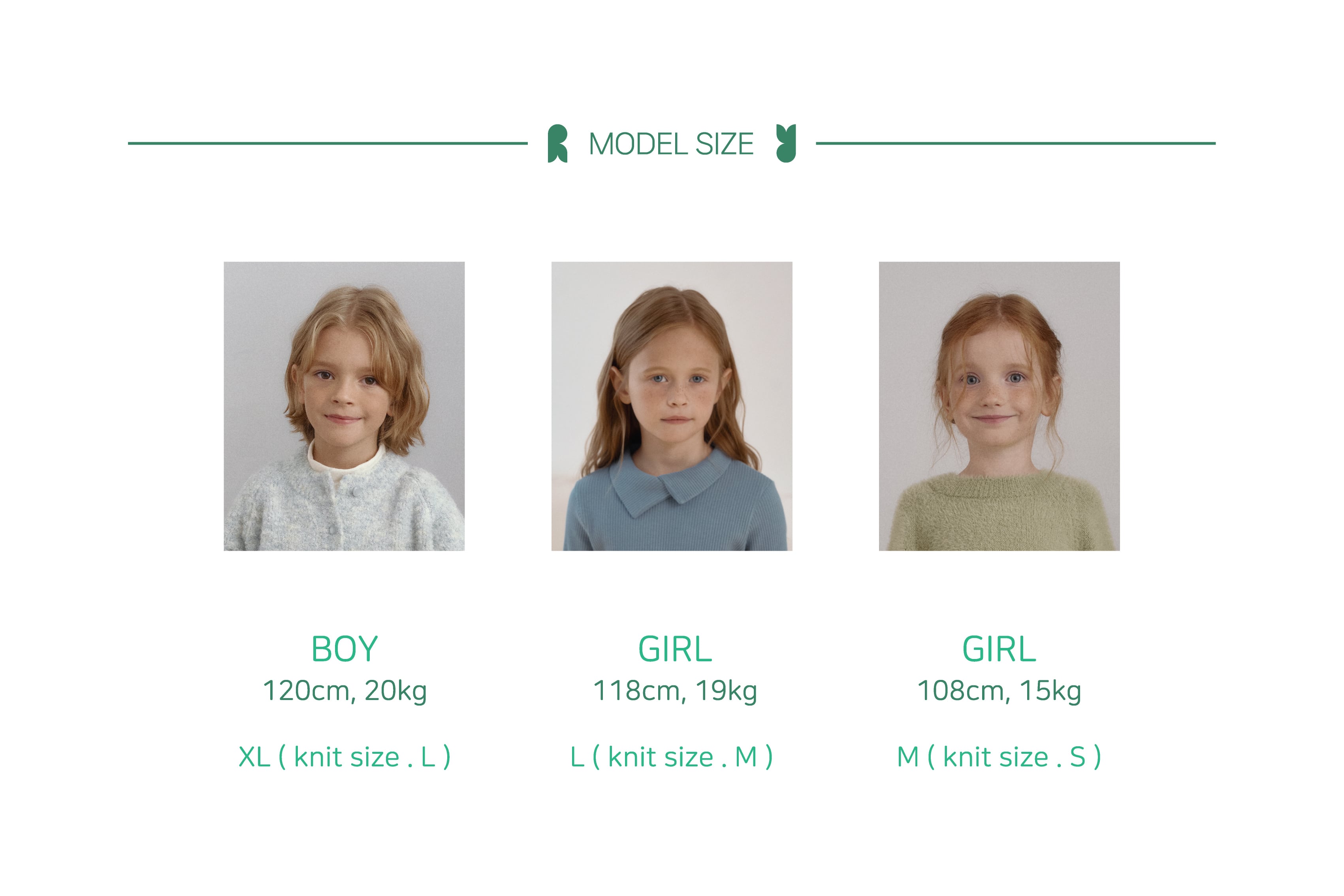 ・girl:118cm / 19kg / L(ニットサイズ M)