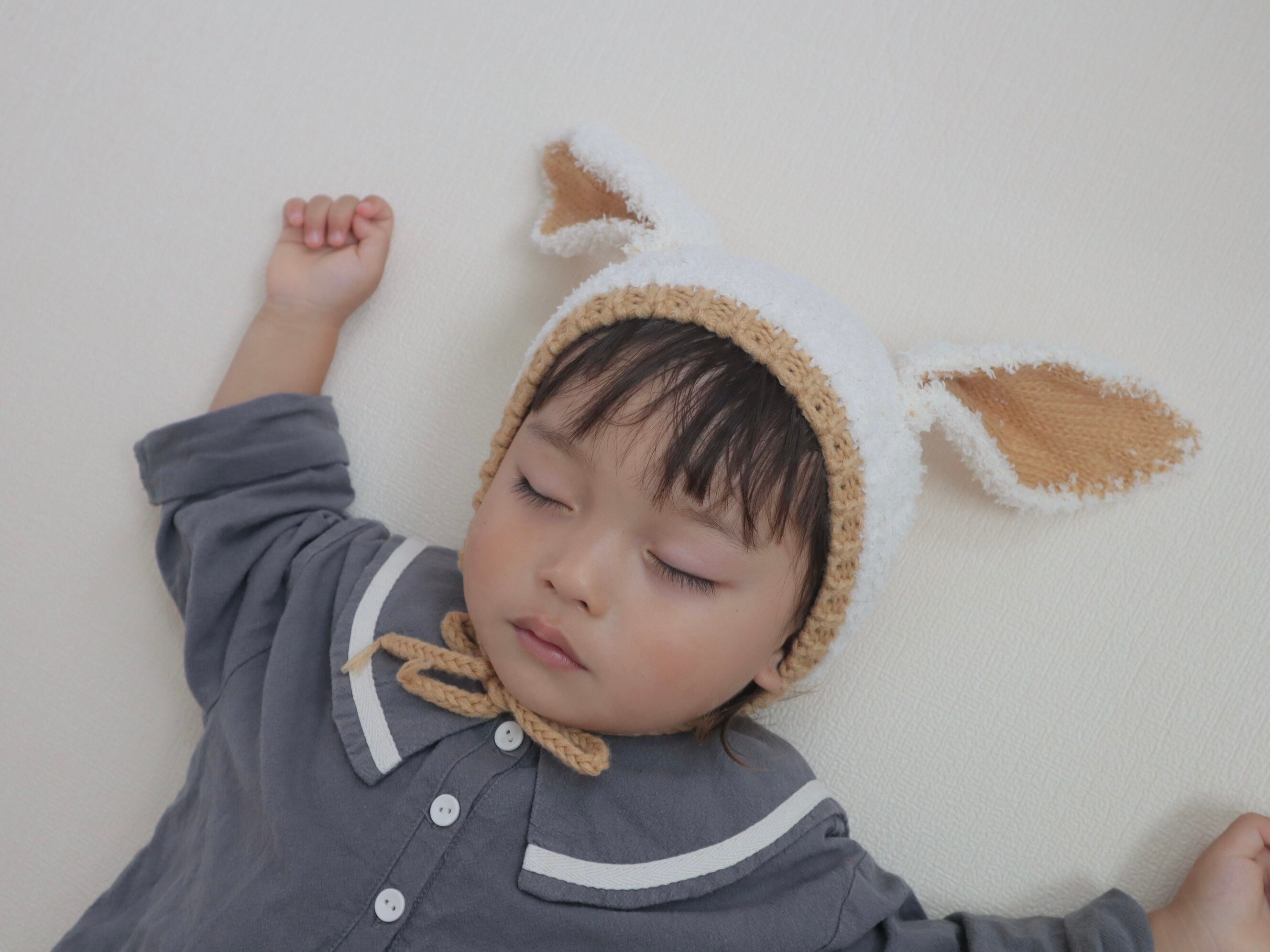 ウサギのニットボンネットです♡