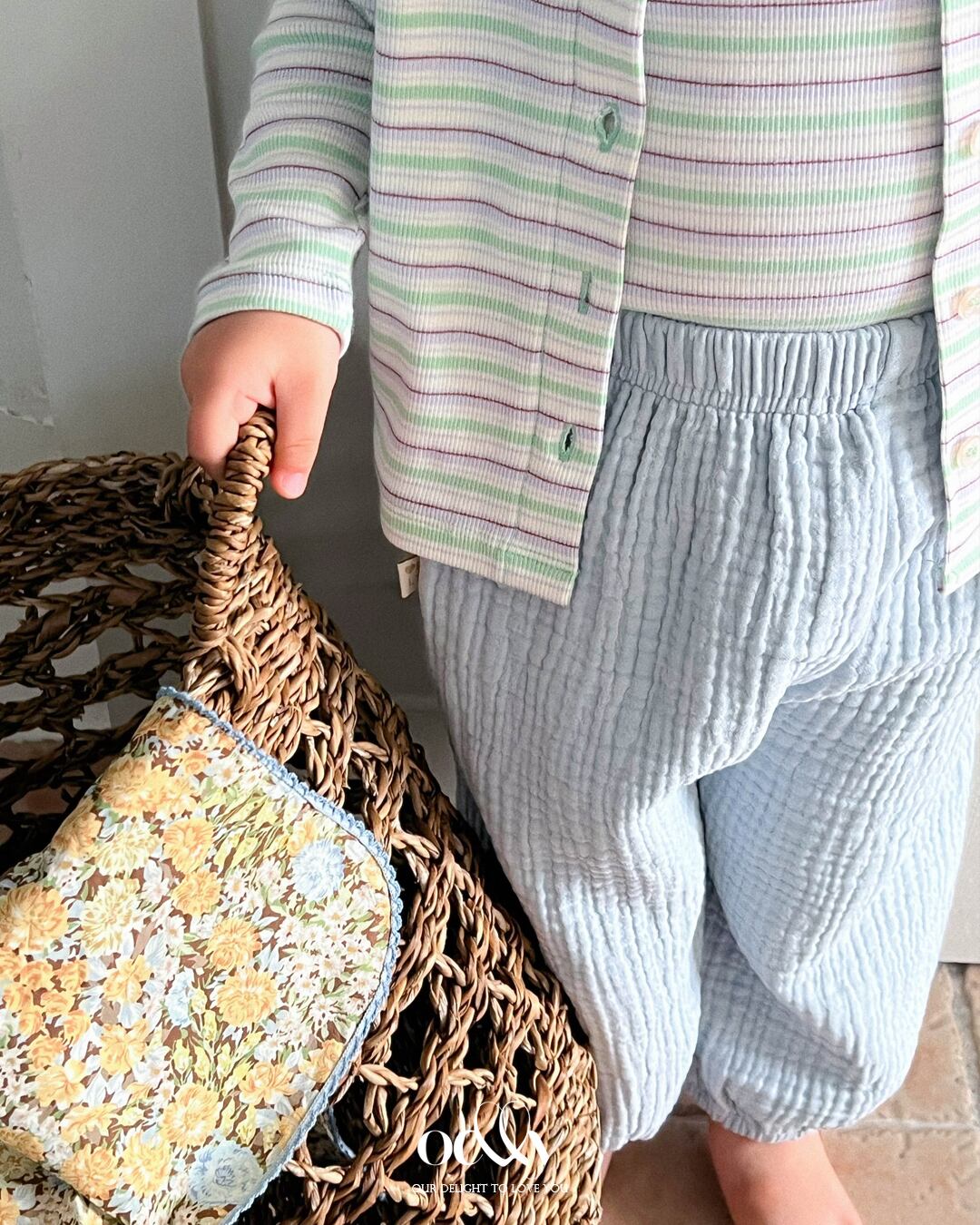 やわらかく通気性に優れた、コットン100%のガーゼ素材で仕立てたパンツです☁️♩