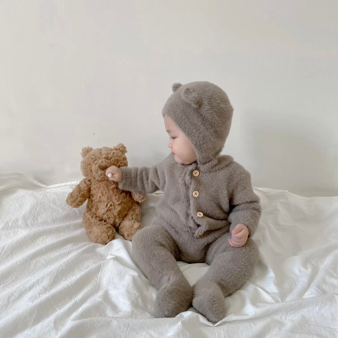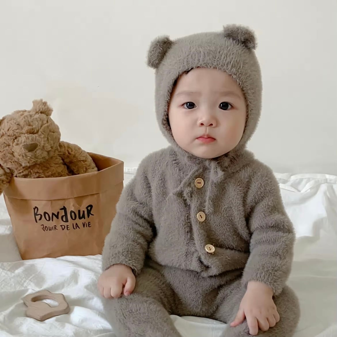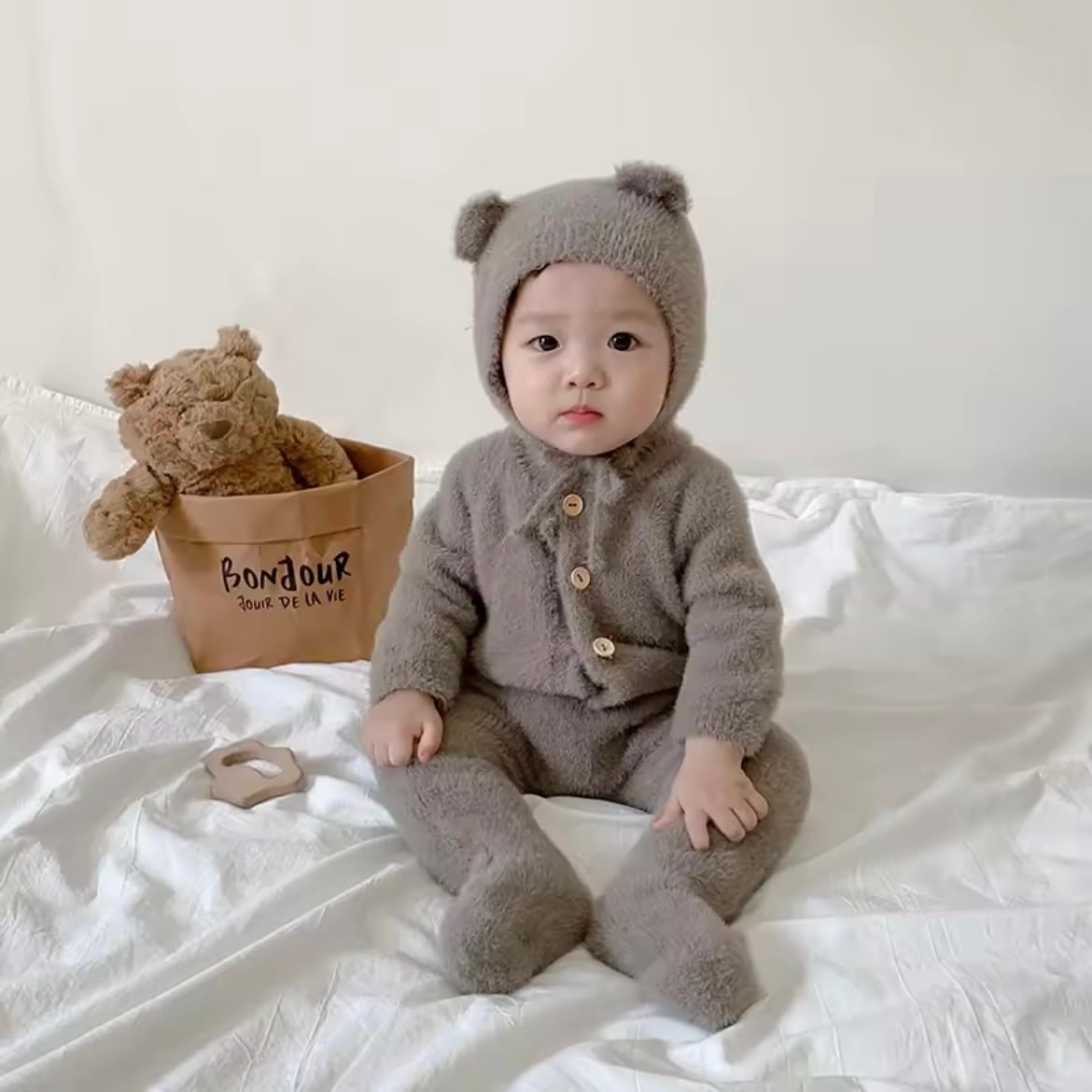 くまボンネットとロンパースのセットです♡